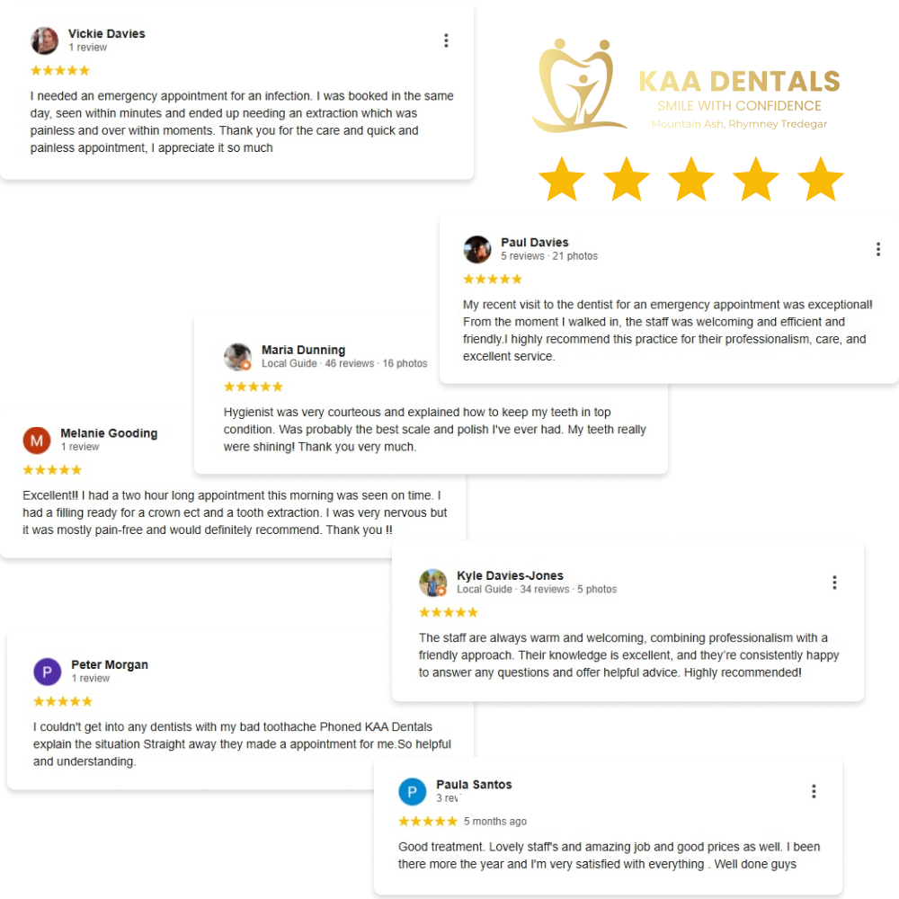 If you’re searching for an emergency dentist near you or a walk-in dental clinic in Mountain Ash (CF45 3HB) or Rhymney, Tredegar (NP22 5PW) , KAA Dentals is here to provide fast, effective relief.